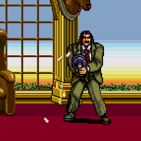 - Mr. X's appearance bears a strikingly resemblance to another beat 'em up final boss, Willy Mackey, from Technō Japan's Double Dragon (1987) and Double Dragon II: The Revenge (1988), respectively. He is also named after another beat 'em up final boss from Irem's Kung Fu Master/Spartan X (1984).